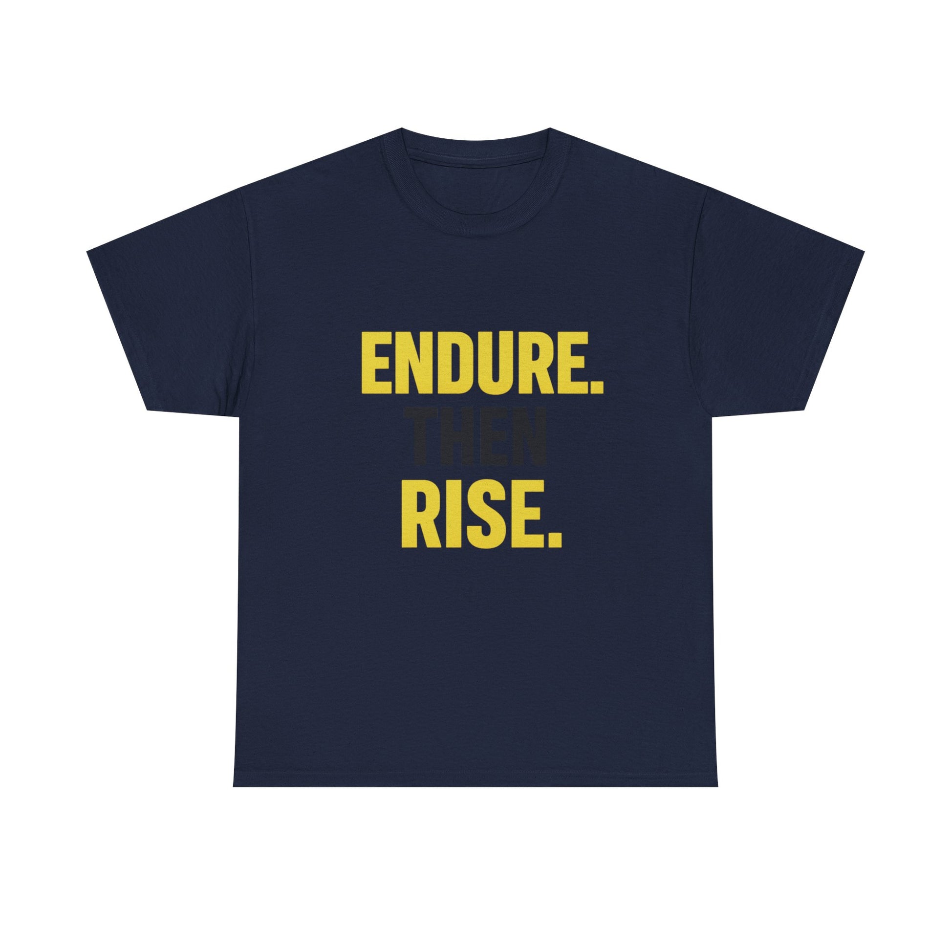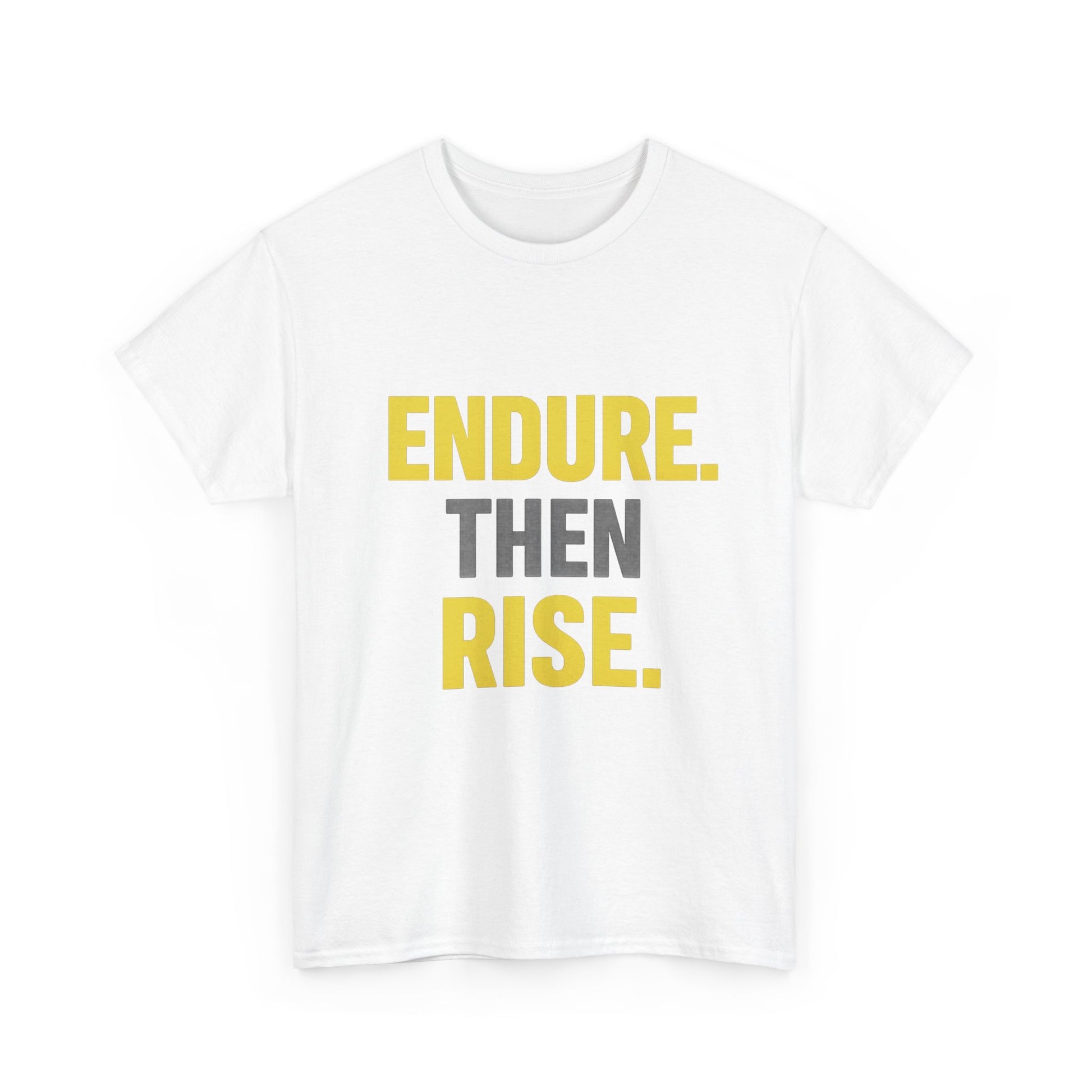 Endure Then Rise Heavy Cotton T-Shirt, Resilience Mindset Tee, Motivational Classic Fit Gym Shirt. This T-Shirt exudes a resilient mindset and motivation for those who wear it, perfect for gym-goers and anyone seeking inspiration in their daily life. Ideal for fitness enthusiasts, athletes, and those who appreciate a classic fit tee with a powerful message. Relevant for workout sessions, sports activities, and daily wear.