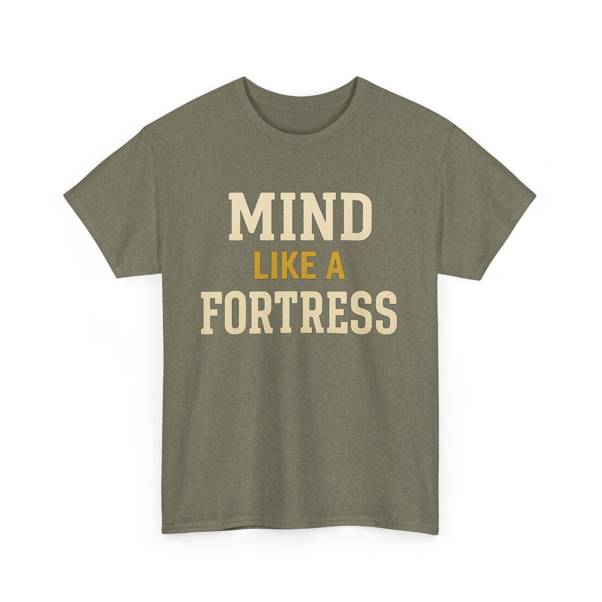 Stay motivated with the Mind Like a Fortress Heavy Cotton T-Shirt, designed to inspire mental strength. This tee is perfect for those seeking motivation and empowerment in their daily lives. Ideal for adults looking for a comfortable and durable shirt to wear year-round.