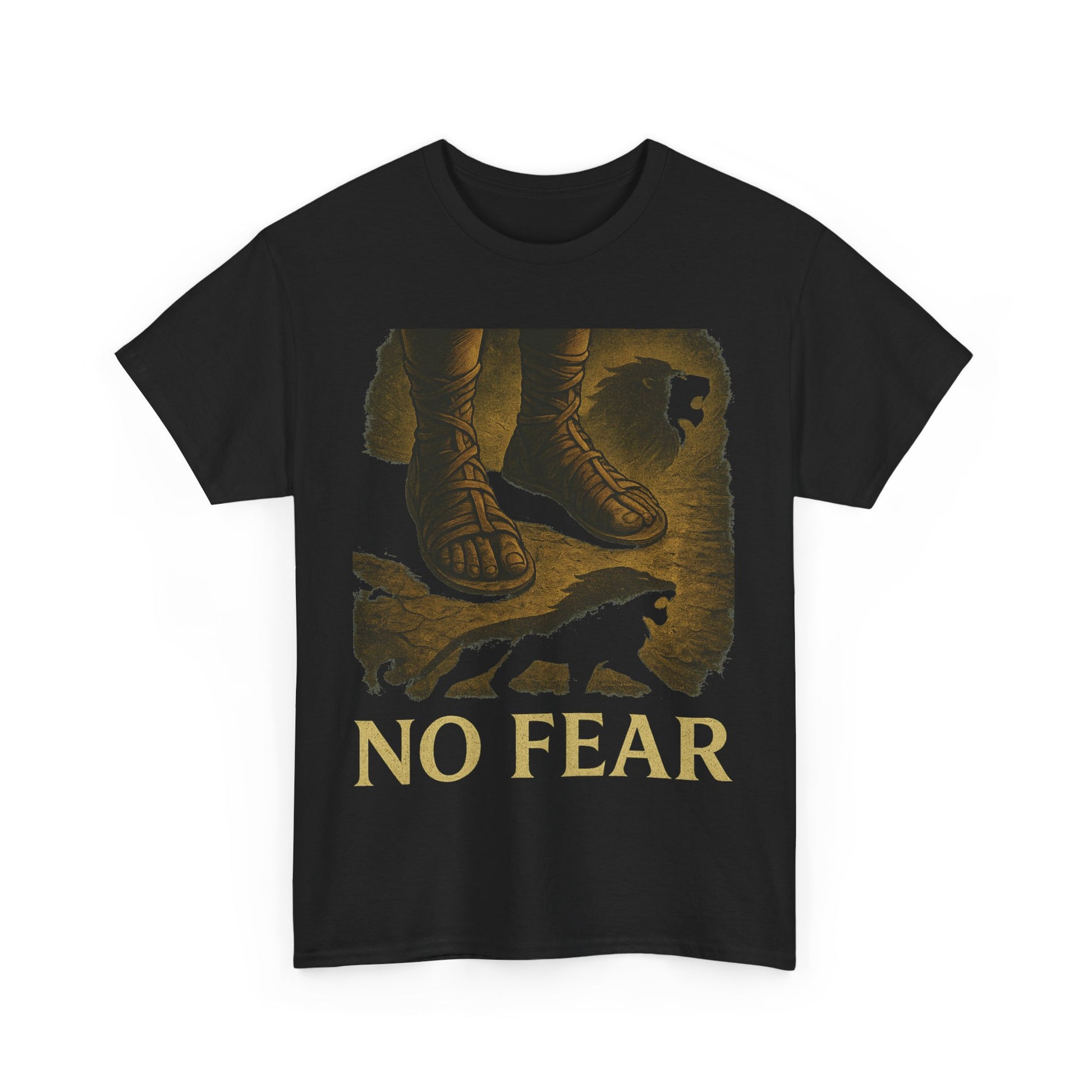 Step forward without hesitation in the No Fear Gladiator T-Shirt, a bold visual expression of inner strength and unshakable courage. The artwork features Roman-style sandals grounded in firm stance, with a lion’s shadow cast beneath — symbolizing how quiet confidence can roar louder than words.
